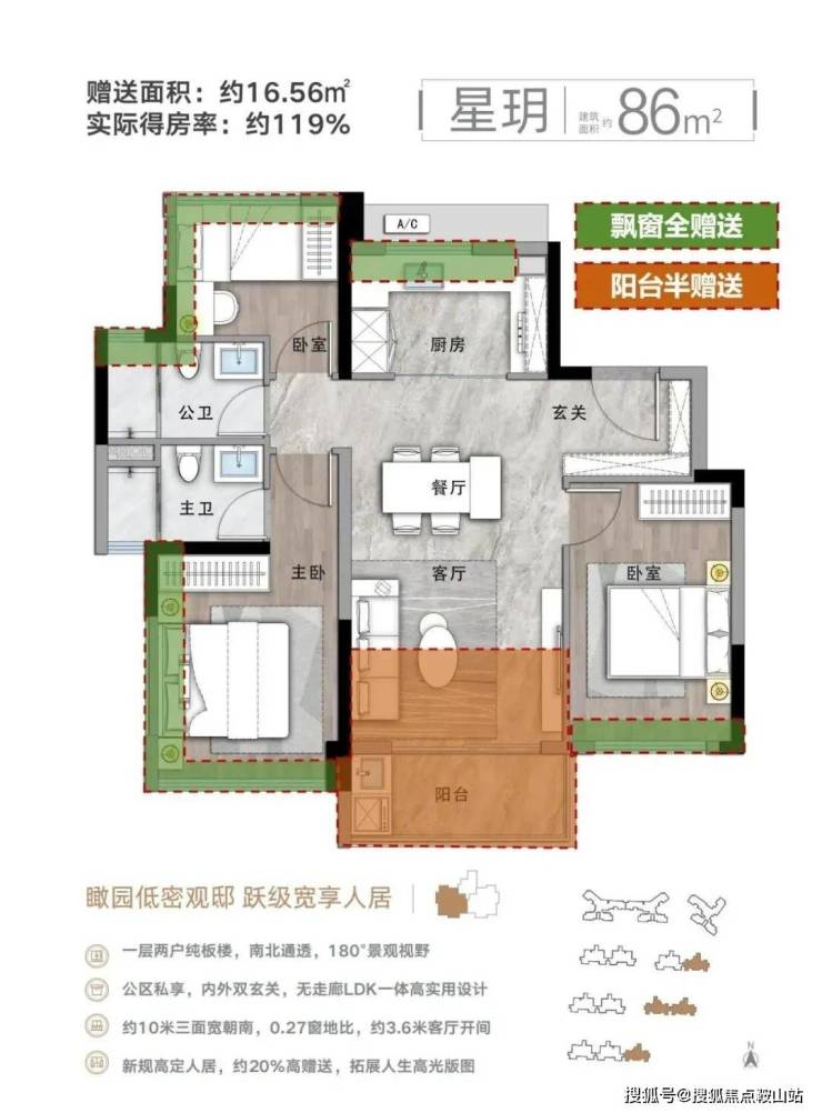 首推的 12 - 14 栋均为两梯两户的板楼,户型为 86㎡和 106㎡ 。“星玥” 建面约 86㎡的三房两厅两卫户型,整体方正,独立入户玄关设计增加了私密性。
