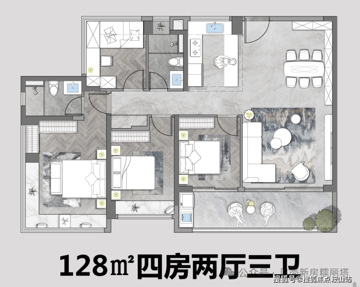 128㎡:四室两厅两卫