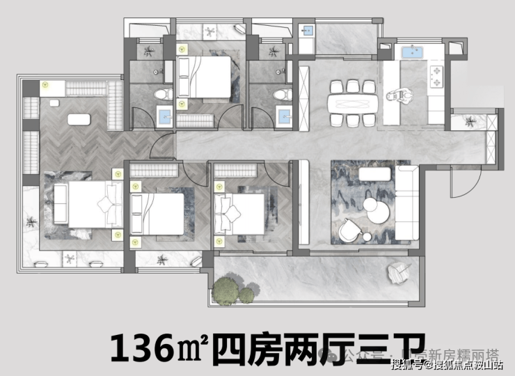 136㎡:四室两厅两卫