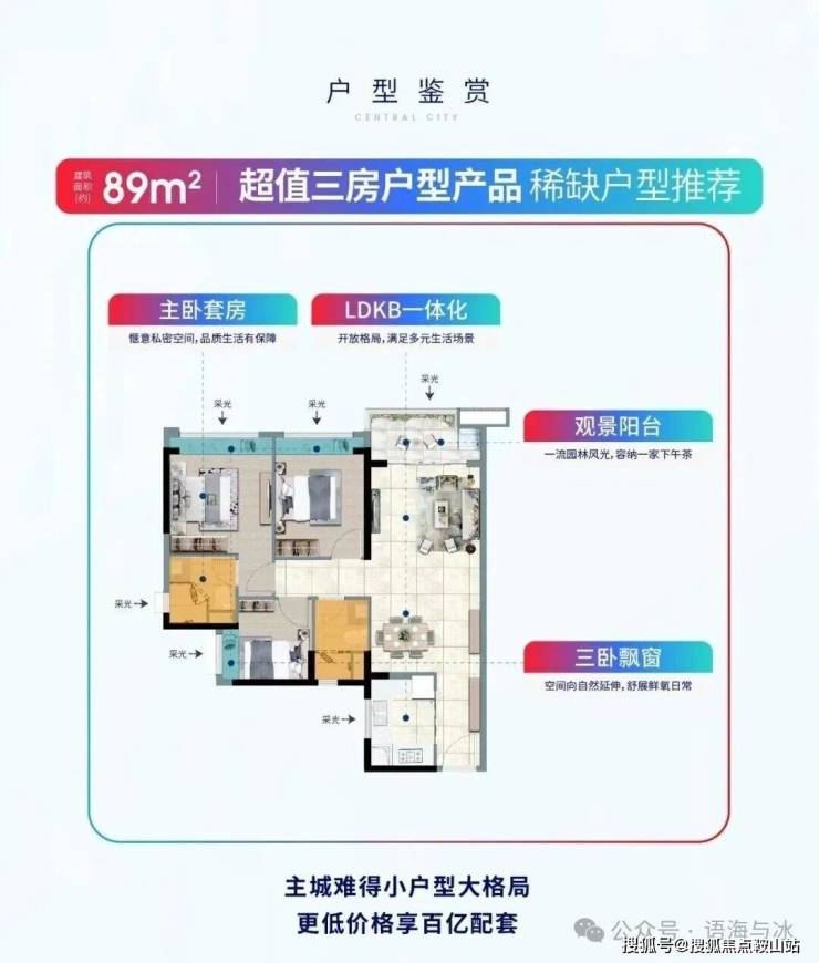 建面86平三房,动静分区,景观阳台看中心园林,三卧大飘窗。