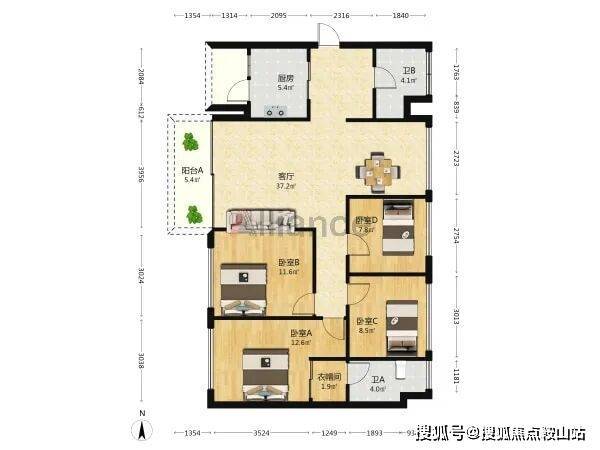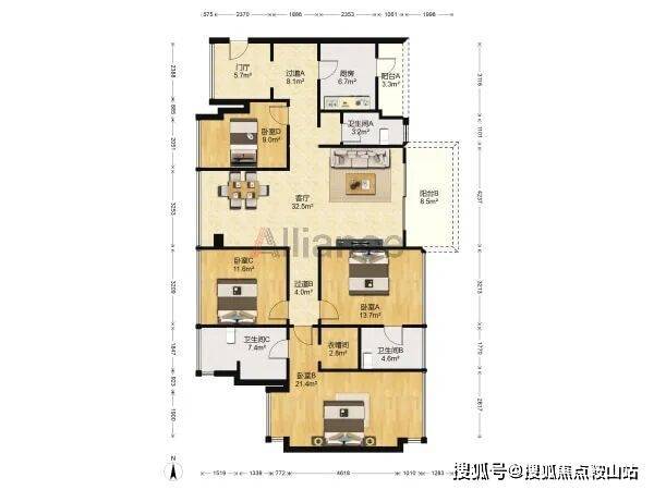 ◆户型:4室2厅1厨3卫2阳台,可改五房
