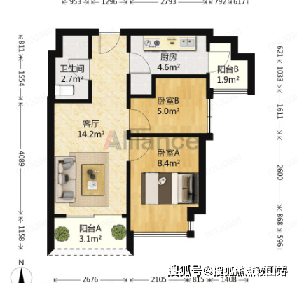 ◆户型:1房1厨1卫1阳台