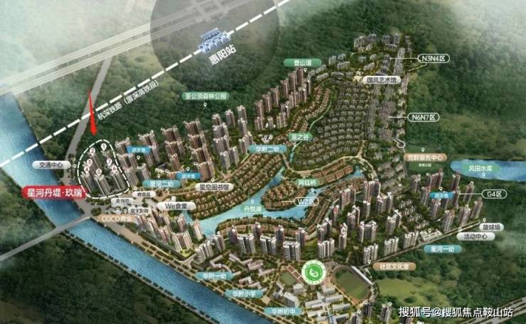 星河丹堤是星河集团落子惠州的标杆百万方山湖大城,占位惠阳南站新城核心,紧邻惠州南站,高铁约 26 分钟直达深圳北,深汕高铁通车后更可快速通达南山西丽,无缝融入深港一小时生活圈,交通通达性优越。