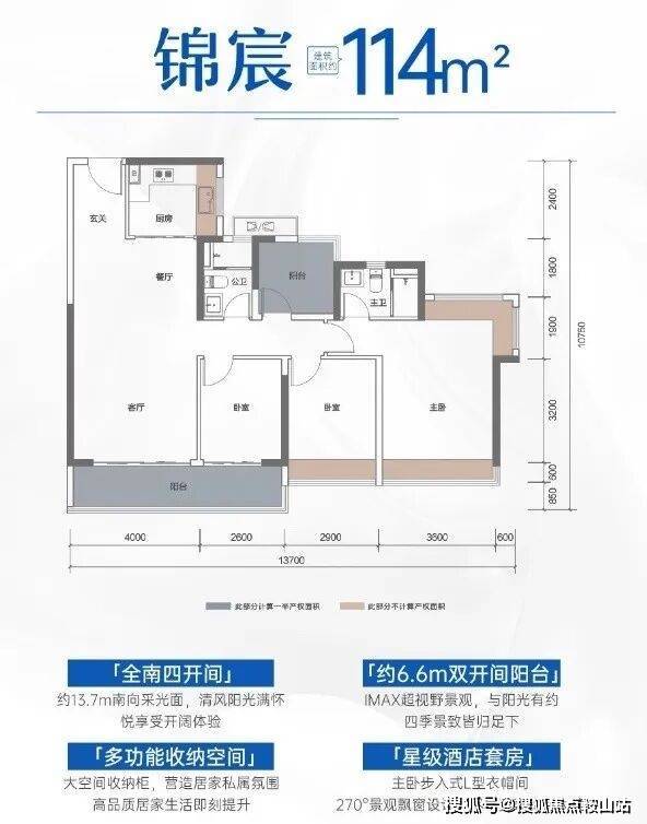 户型产品采用旧规设计,但在旧规中堪称佼佼者。主力户型有85㎡、96㎡、114㎡、126㎡的带装修三四房。以114㎡四房为例,做到了四开间朝南,主卧带独立卫浴和衣帽间,空间布局合理。