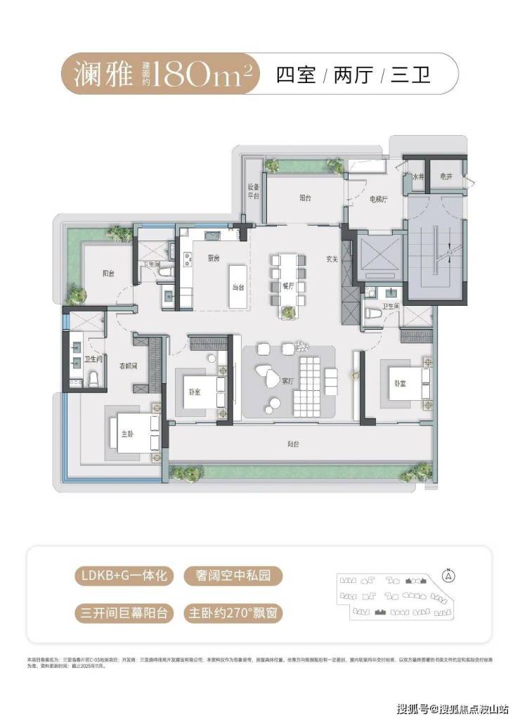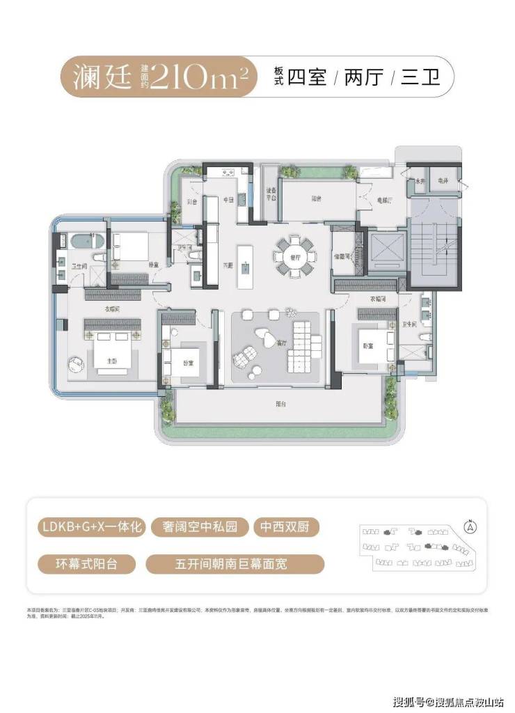 【概赏嘉澜ABOUT GALAND】◎项目地址:中国·三亚·临春城市更新门户(新风街302号)◎占地面积:约74亩◎容积率:约2.0◎绿地率:约40%◎产权年限:70年(2025年-2095年)◎产品面积:建面约132m²、156m²、180m²、210m²、240m²,共603席◎开发商:万科集团、三亚城运集团