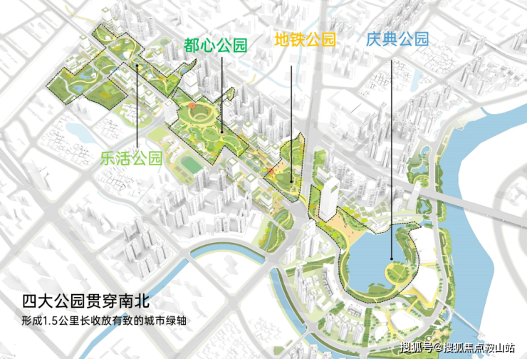 采用三脉编织理念,消除了居住、商业、城市绿化空间等不同功能边界。不需要驱车前往,生活在这里,通过舒适的步行距离,就可以感受丰富的城市地标节点和风景变化。