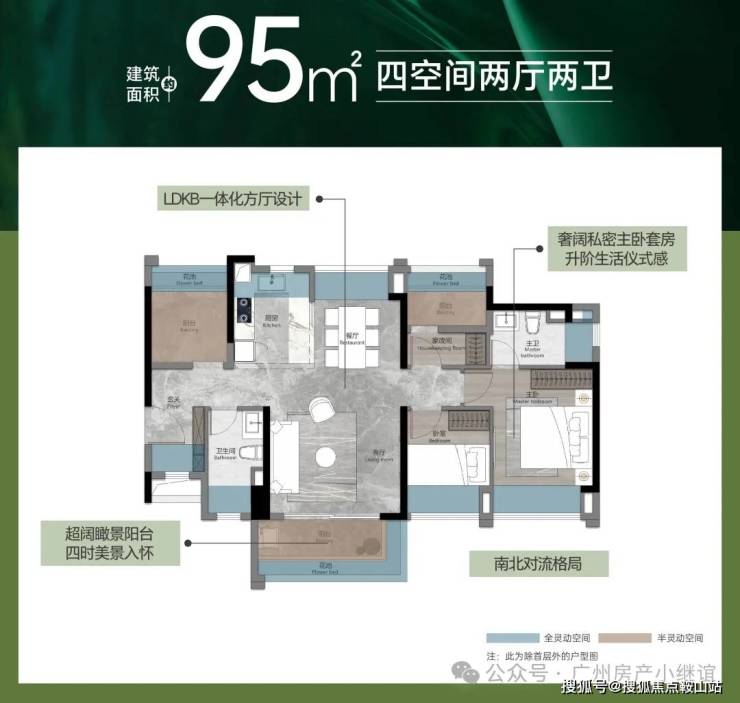 C6栋建面约84-95㎡新规三四空间,既能满足当代年轻家庭,同时兼顾老年人康养需求,以南北对流、LDKB 一体化方厅、灵动可变空间为核心设计亮点,实现空间的实用性与居住的舒适度。