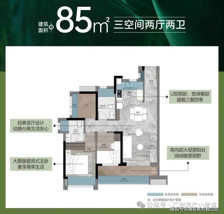 产品力方面,由国企越秀地产开发,工程进度与交付品质有保障。主推 84-133㎡三至四房,采用新规设计,户型使用率超 100%,多为南向或南北通透格局,且全部装修交付,车位比约 1:1.38,居住舒适度较高。
