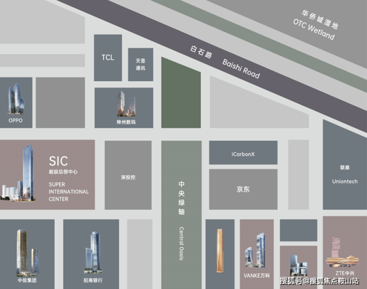 汇聚中信集团、招商银行、中国电子、万科总部、恒力国际等世界500 强企业总部。