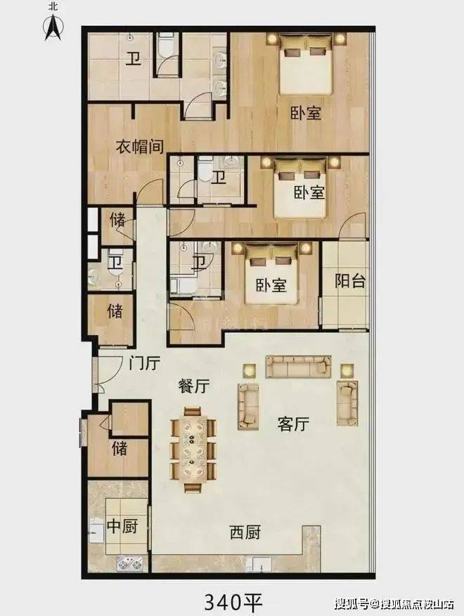 客厅105㎡,主卧65㎡