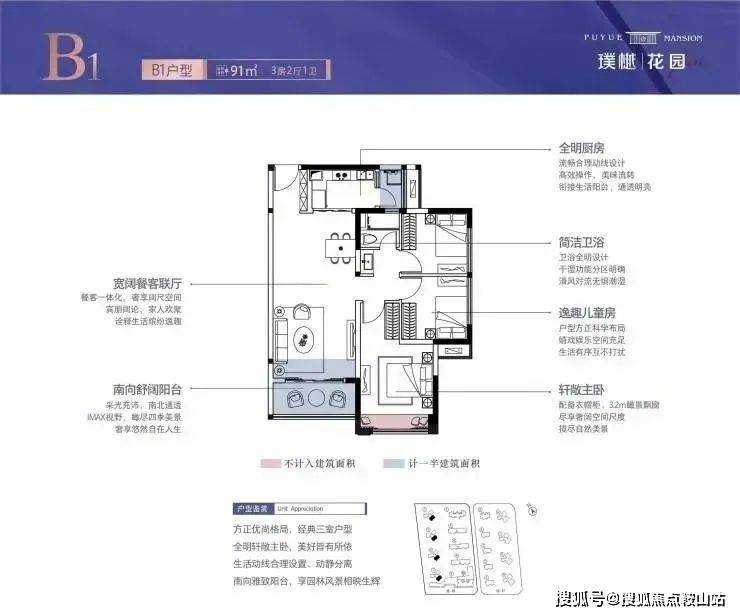 2. 板式全明阳光三居,南向舒阔阳台,风光四季尽览