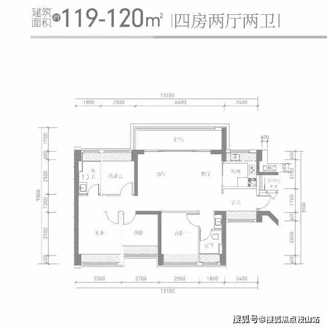 03.东北向【建面120㎡4室2厅2卫】3梯6户,层高3.00米,总楼层46F,约510万