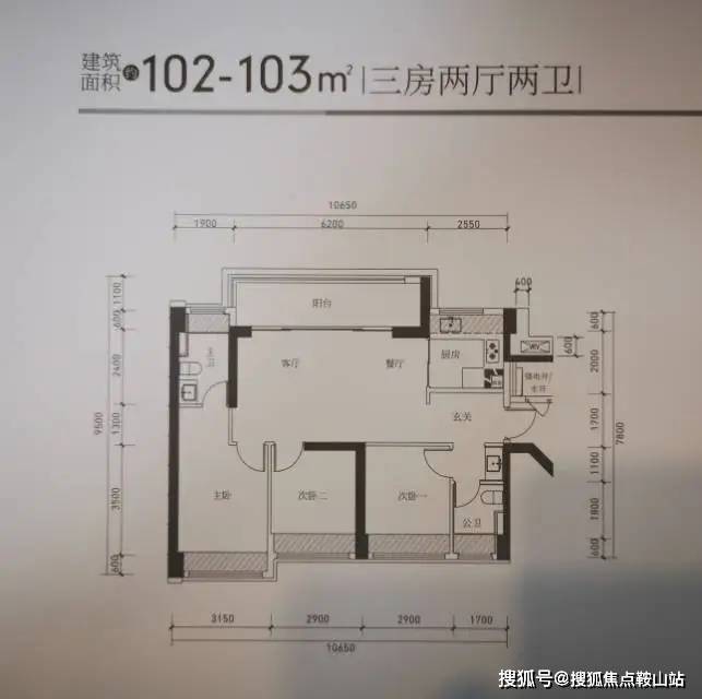 02.西南向【建面99㎡3室2厅2卫】,3梯6户,层高3.00米,总楼层46F;约390万