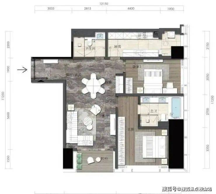 约164㎡2房2厅2卫(独立入户玄关,动静分离,约33㎡豪华主卧,承载品质生活)