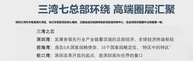 揽胜三湾:深湾春笋、前湾浪涛、桂湾摩天、大南山,360度视收前海长幅全景,整个前海发展精粹在怀。