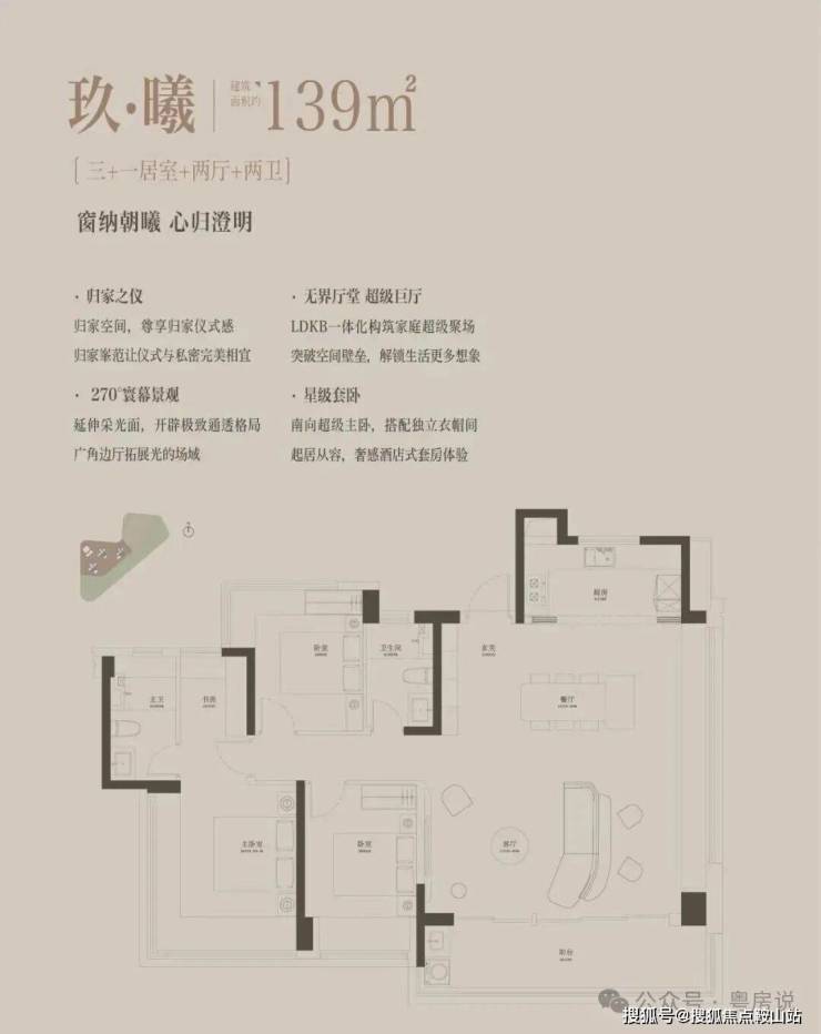 三、139㎡3+1房2卫:16-32层最优楼层5.74-5.95万/㎡,总价不到830万,就可以买到200方大户型的景观视野及空间享受,也是项目最稀缺、最靓的楼王景观单位,全玖章最好的一条139!
