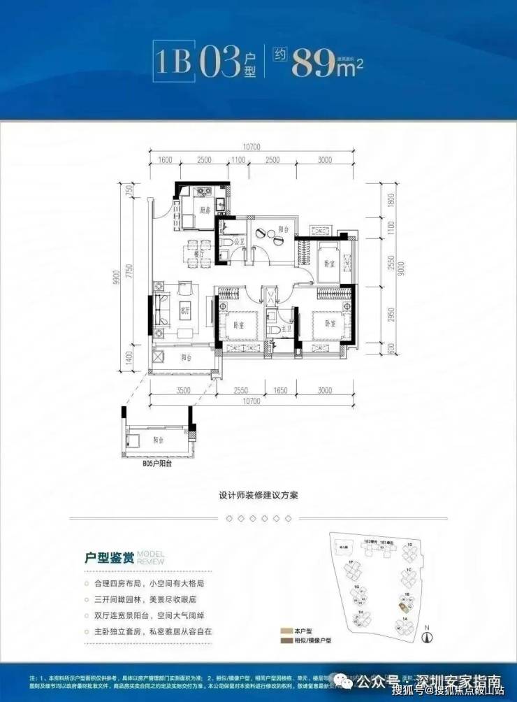 ✅ B03/05户型:约89㎡ 四房两厅两卫: