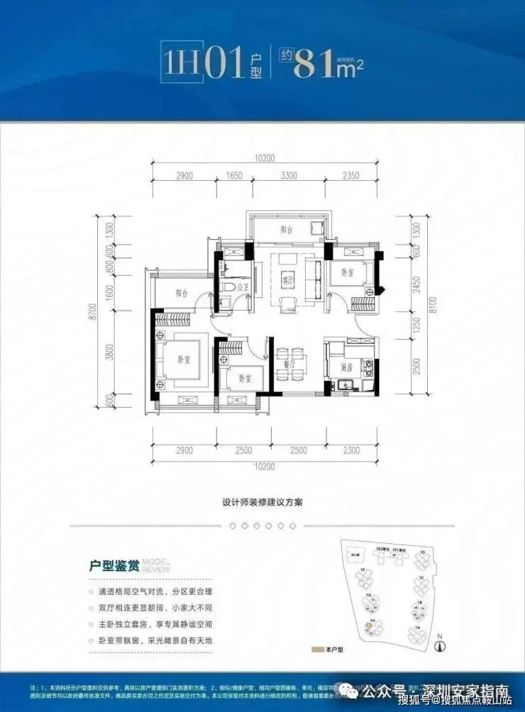 ✅ H02/03户型:约81㎡ 三房两厅两卫: