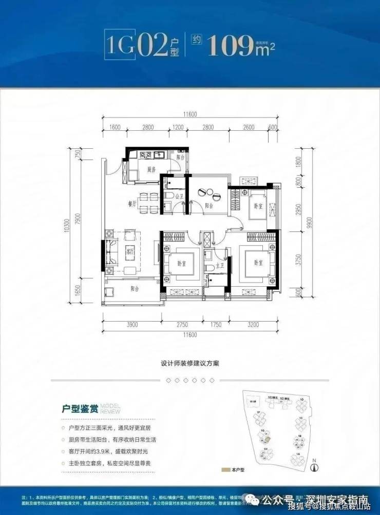 ✅ G02户型:约109㎡ 四房两厅两卫: