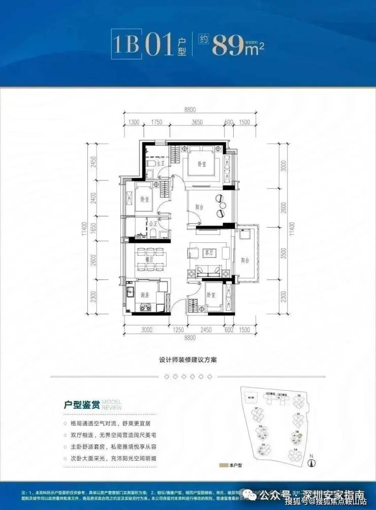 ✅ B01户型:约89㎡ 四房两厅两卫: