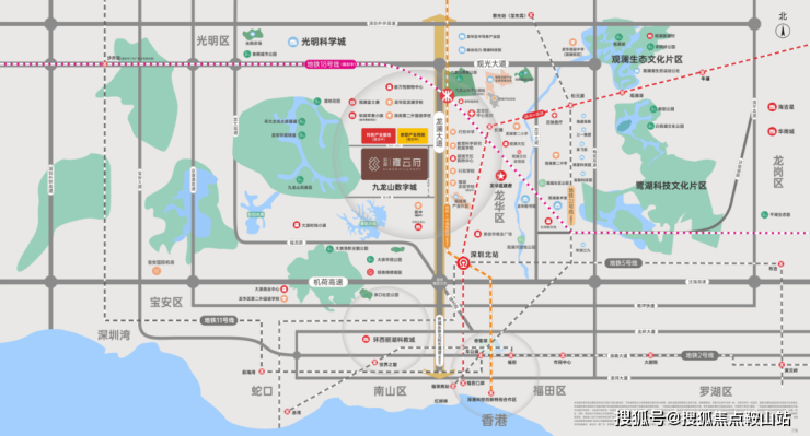 招商雍云府位于龙华区福城街道九龙山社区龙澜大道旁。是去年9月28日深圳第三轮土拍,“招商” 以 15.03亿 摘得的龙华区福城街道 A922-0823宗地。所在片区属于市级重点区域”九龙山智能科技城”,背靠大水坑社区公园,紧邻着华为新基地(2021年10月拿下的地块)、美团九龙山智能科技产业园、万科九龙山等。