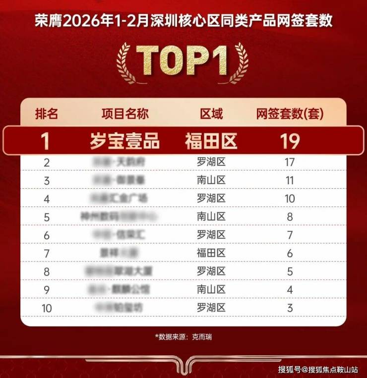 当市场回暖,谁在裸泳?谁在屹立?岁宝壹品,用一连串的亮眼数据给出了答案。自2025年下半年以来,项目一直稳据深圳核心区同类产品网签套数TOP1。进入2026年,这一领先地位非但没有松动,反而愈发稳固——1-2月岁宝壹品继续蝉联核心区网签套数榜首,成交业绩一路冠领。