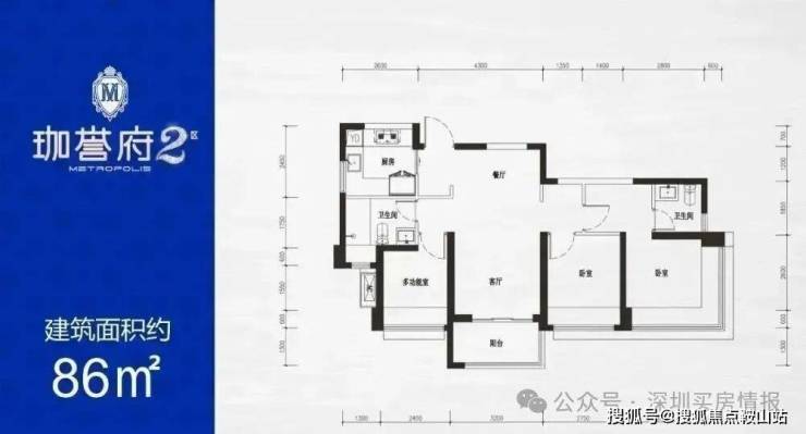 85㎡的3房2厅2卫,设计的是竖厅格局,LDKB一体化,客厅3.2米开间,S墙设计预留冰箱卡槽位,3个卧室分别为3/2.7/2.4米的宽度,主卧270°环幕飘窗视野,U型厨房,公卫三段式分离设计,得房率:77.54%(不含赠送),阳台进深1.6米,西北朝向。