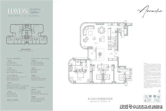建面约328㎡户型创意展示空间效果图,实际以交付为准