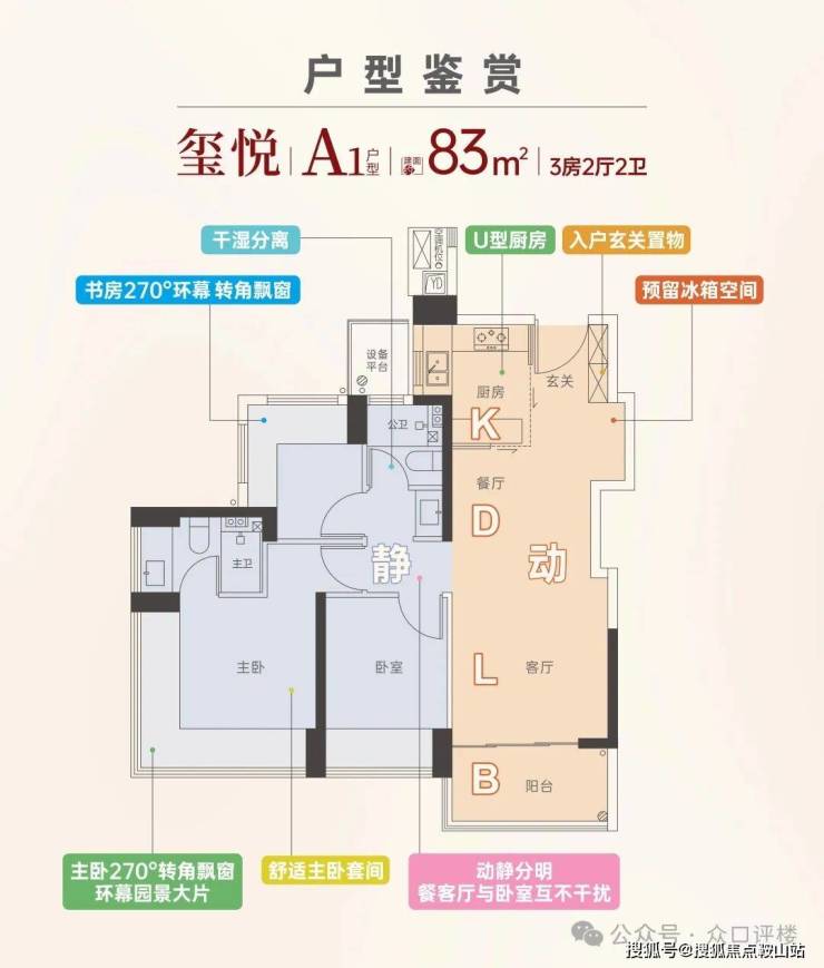 这在以前是不敢想象的面积段做标准三房两卫。主卧带270°转角大飘窗,采光面极大。对于预算有限的年轻人来说,总价门槛友好,且真正实现了功能性的“一步到位”。