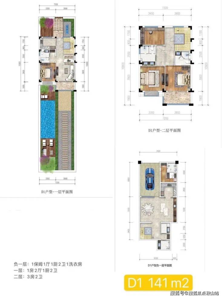D2户型:2房4厅3卫|下叠带花园|共4套