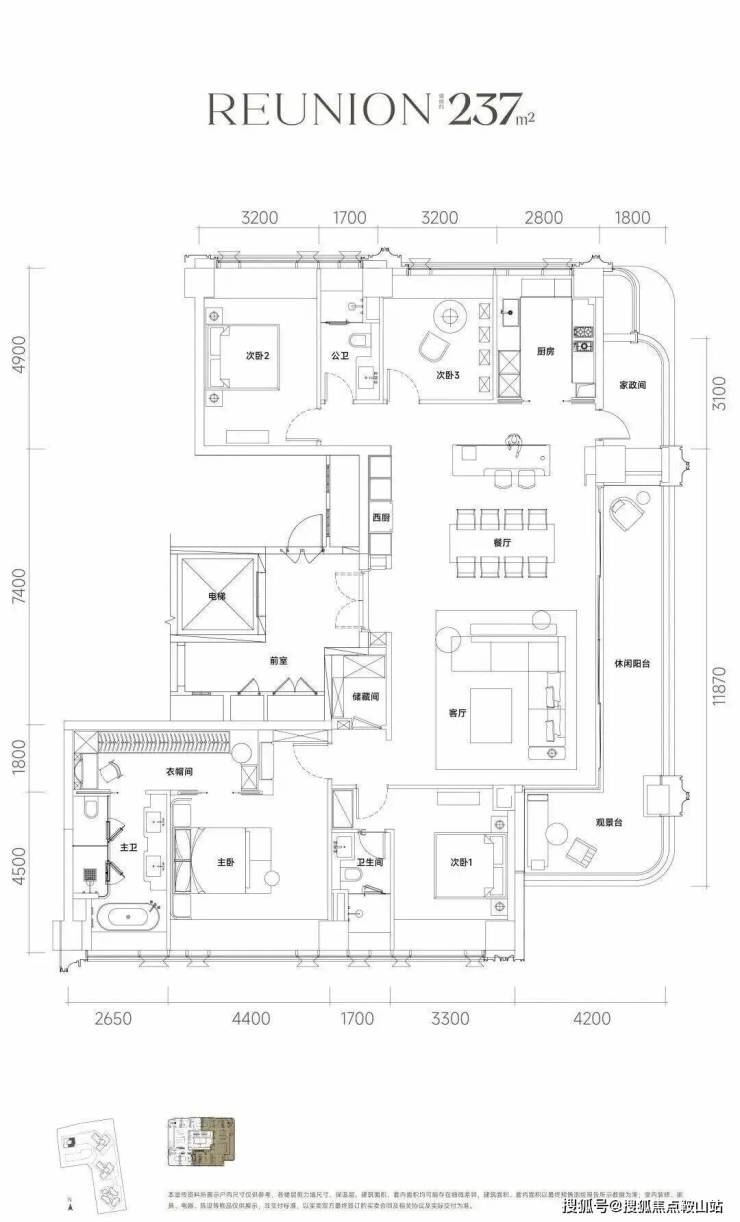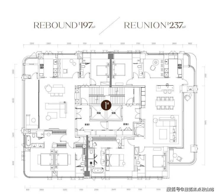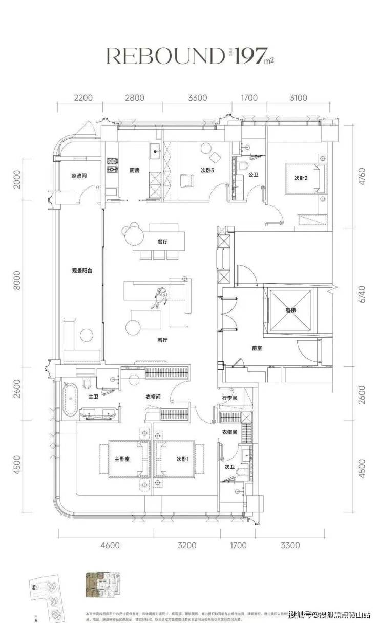 主力户型为197-235㎡大平层,主打T2/T3楼型。