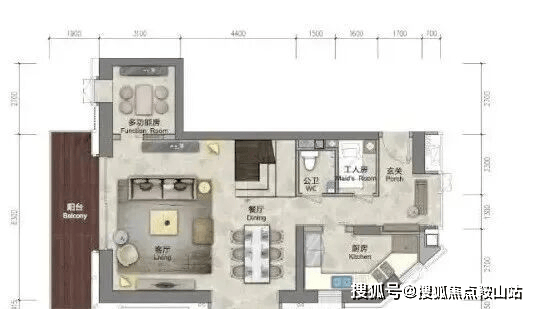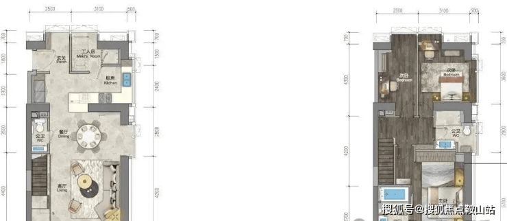 113㎡复式三房两厅三卫+工人房:南北通透三面景观,5.6米客厅与主卧开间,独具品位,尽享奢阔。