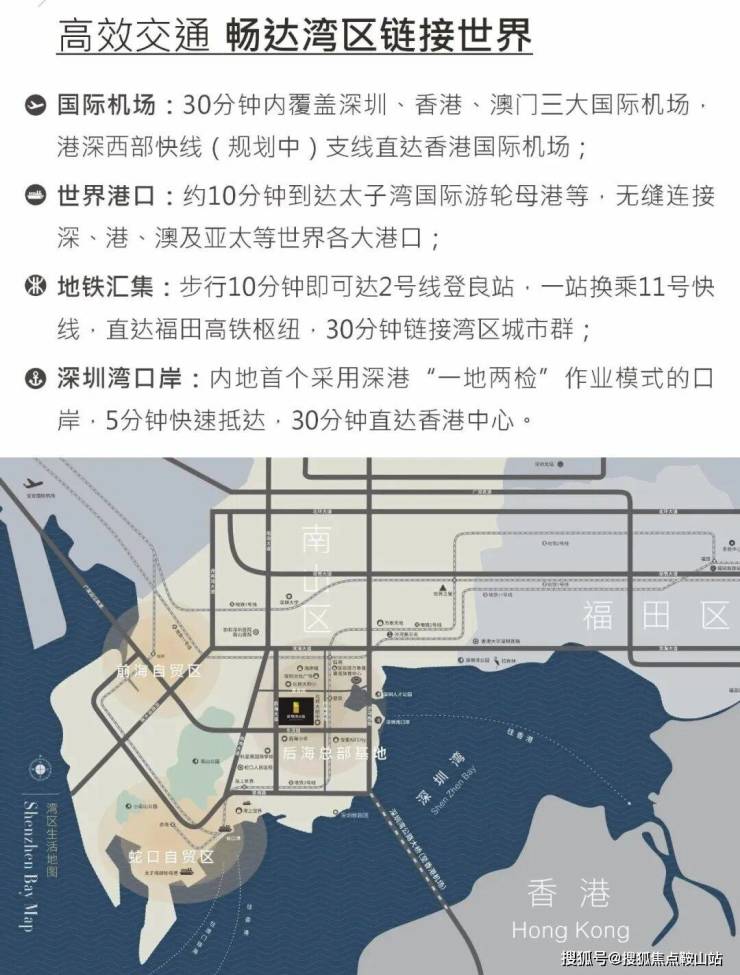 地理位置优越:紧邻深圳湾超级总部基地和深港跨境通道深圳湾口岸,周边商业氛围浓厚,世界500强企业总部聚集。