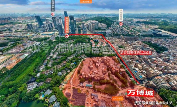 项目到南村万博E2口约1公里,可以乘坐7号线18号线,7号线往西通到南站和佛山的顺德美的大道。往东北方向连接我们的大学城,然后上去科学城的燕山站,把东部连起来啊。18号线从南沙天河,南北贯通,3站琶洲,4站冼村。后期往南通中山,往北到花都。