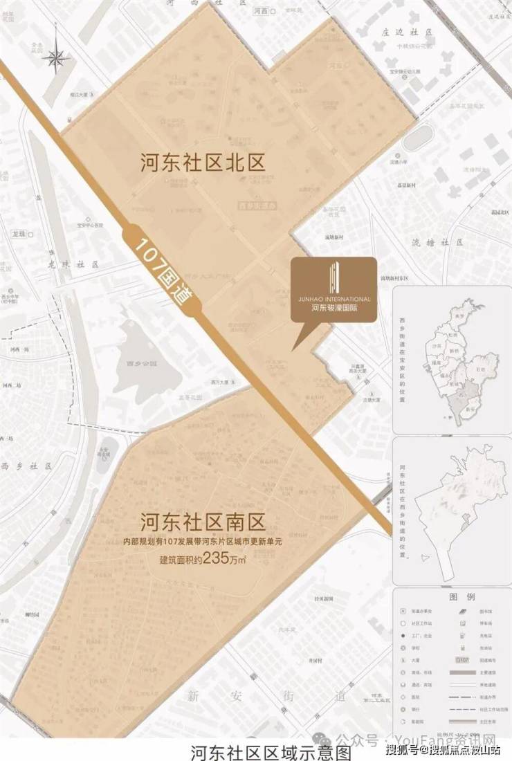 河东社区作为大型社区,分为南北两大区域,打造河东百万大城,其南区规划107发展带城市更新单元,总建筑面积达235万㎡,集办公、商业、酒店、公园等多元业态,带动人流聚集。