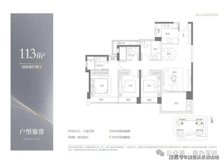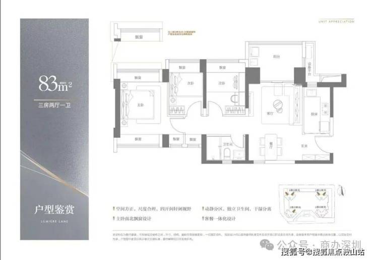 产品:建面约83-113m㎡3-4房品智美学住宅,多面宽朝阳,揽清风入怀;