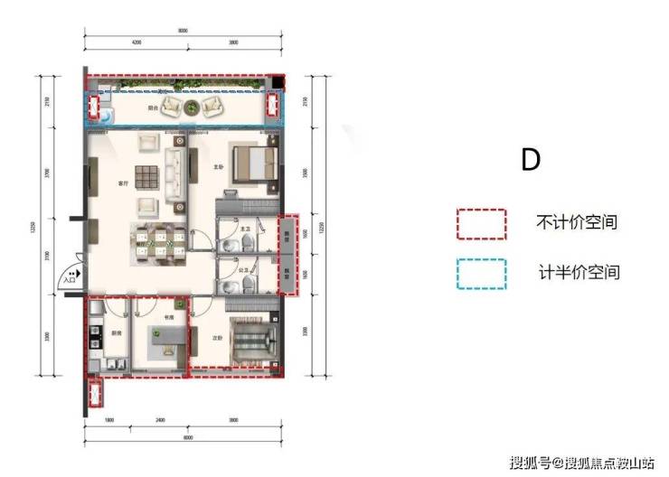 D户型 3房2厅2卫1厨 建面约93-96㎡