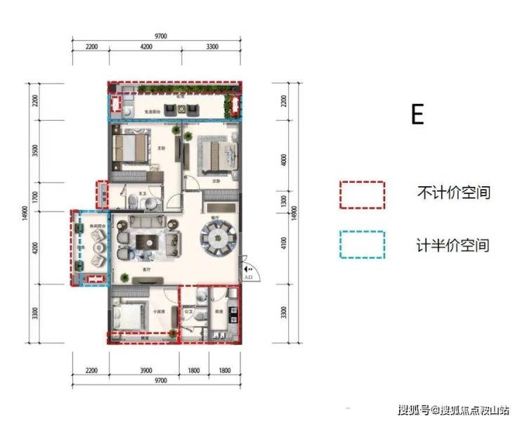 E户型 3房2厅2卫1厨 建面约106-120㎡