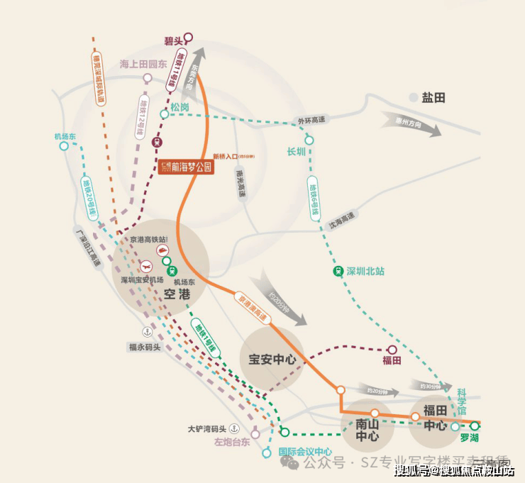 港深西部快线(规划)、穗莞深城际(在建)、深茂铁路、深大城际(在建),迅速连接湾区周边城市。