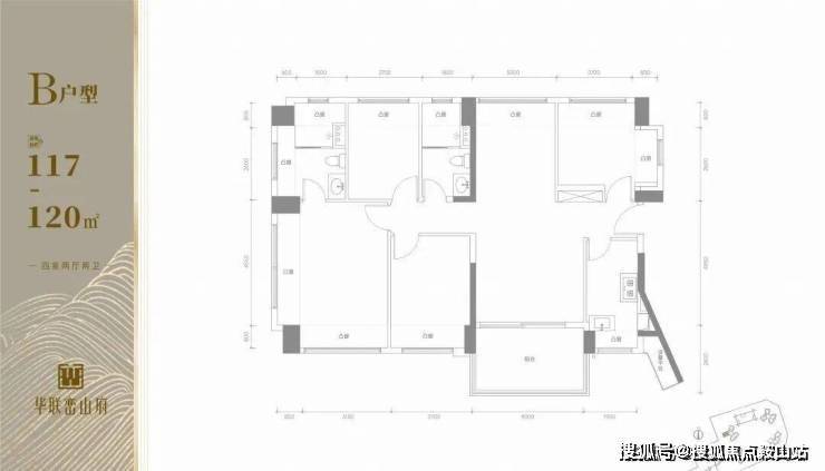 117-120㎡四房两厅两卫(平层):改善主力,南北通透 + 南向三开间,主卧 270° 景观凸窗,四房设计满足多代同堂或 “三孩家庭”。
