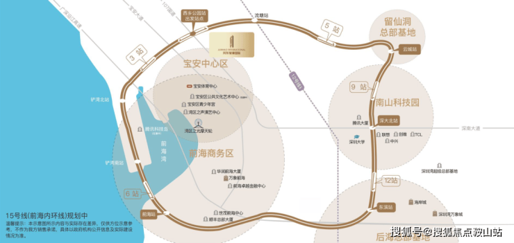 地铁15号线(规划中)作为深圳首条环线轨道,起终点均为前海站,作为战略上的“产业线”,极速串联前海、宝中、大铲湾“腾讯科技岛(在建中)”、南山科技园、后海总部基地、留仙洞总部基地等高端产业密集区,推动资金流、人才流、技术流汇聚,构筑“前海内环”经济大动脉。
