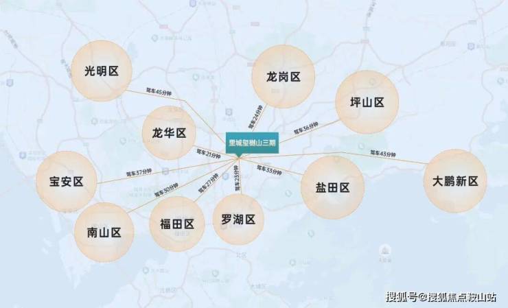 另外从玺樾山出发,去往福田约27分钟,罗湖约23分钟,南山约30分钟,龙岗中心城约24分钟,盐田约33分钟,龙华约21分钟。