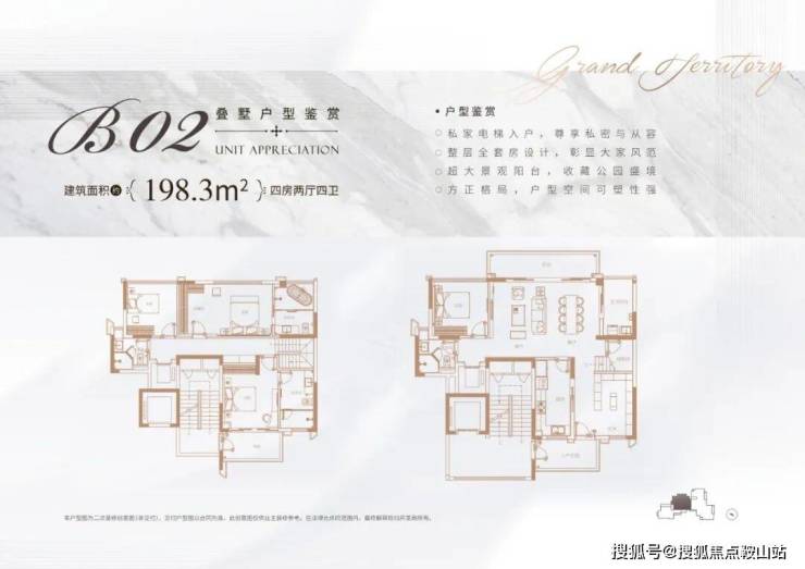 设计亮点:私家电梯入户、全屋套房布局、6米宽景观阳台,实现“有天有地有花园”的居住体验。