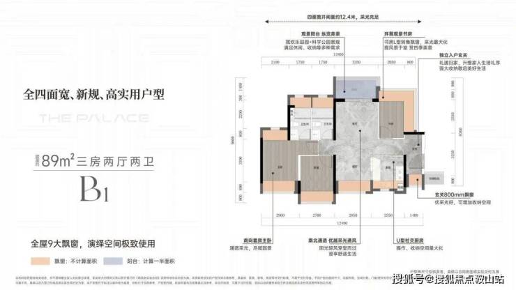 以89㎡A1户型为例,客厅270度采光,无主厅化设计,凸窗80cm深,空间灵活。玄关S型冰箱位,优化厨房空间。主卧270度凸窗,视野开阔。卫生间上下水管外置,节省空间且美观。