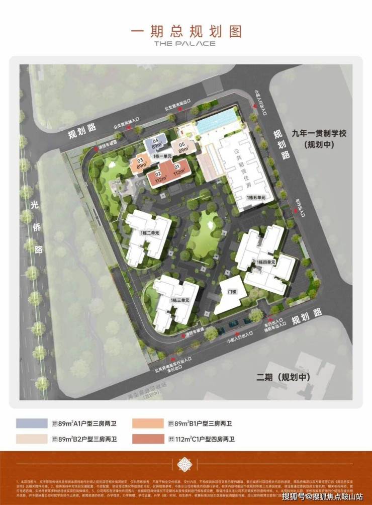 地块规划:首推01地块,占地1.53万㎡,建面13.68万㎡,计容9.55万㎡,容积率6.23,绿化率30.03%。由5栋住宅组成:1栋1单元33层、2/3单元各31层、4单元38层、5单元公租房32层。地下车库含公交首末站。