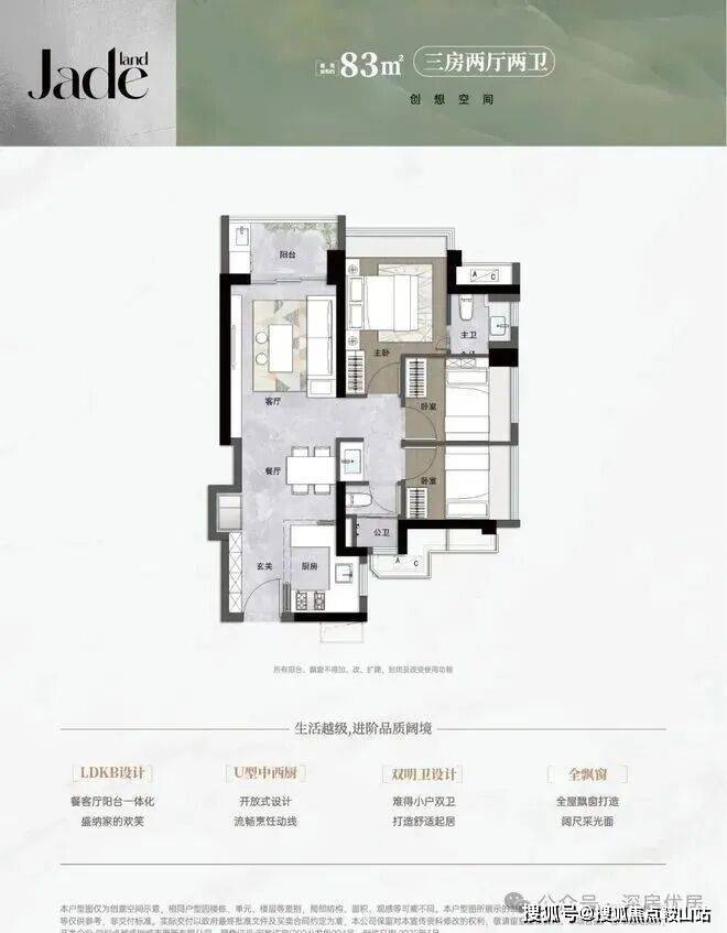 83㎡3房2卫】龙华刚需上车必看,区域内目前唯一80出头能做到三房两卫的户型,超稀缺‼