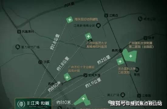 项目2公里范围之内,有7所大型的医疗机构,最近的则是在项目西北角直线800米的珠江医院。