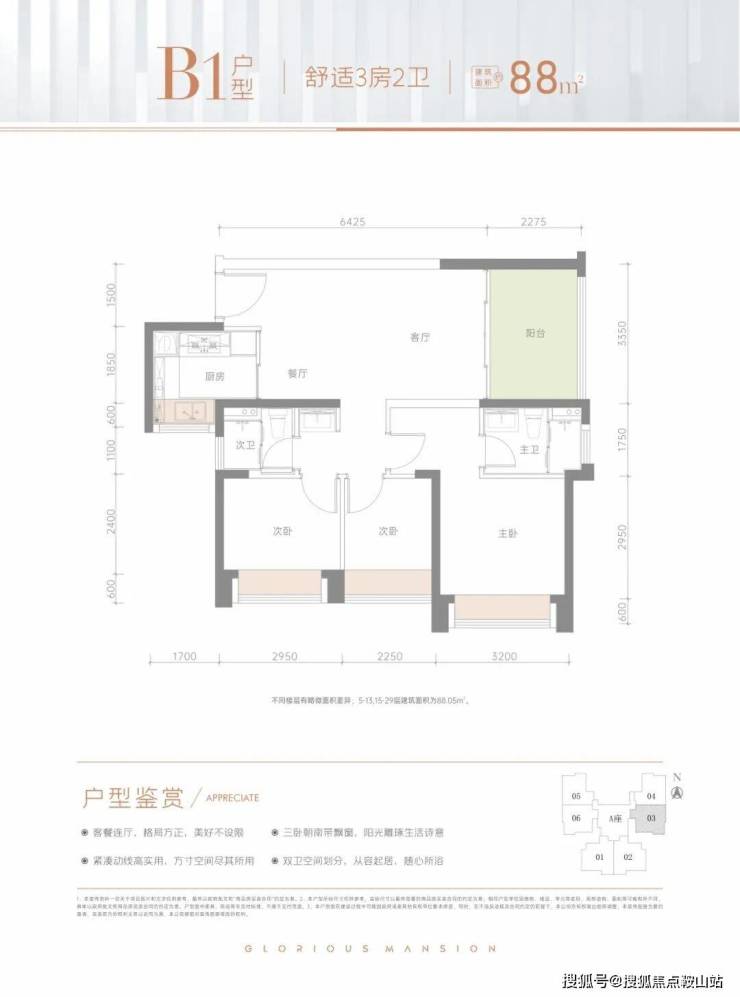 建面约88㎡舒适3房2卫