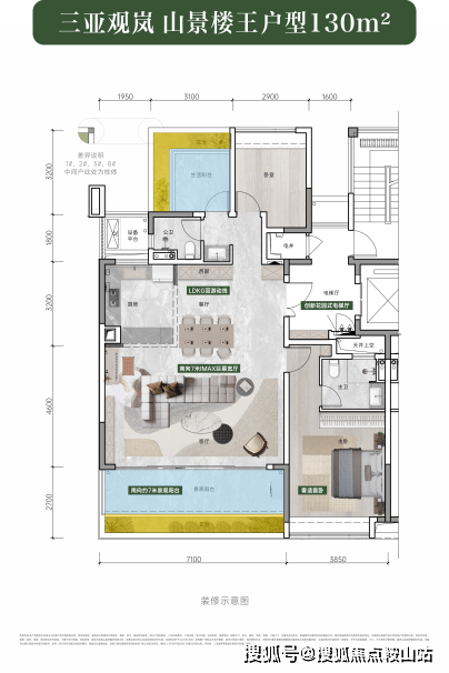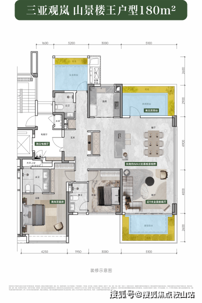 在高端度假体验打造上,三亚观岚融合了国际文旅地标项目的优点。中轴区域打造大面积水系,形成深浅不同的四大度假水系统,无边泳池、全域甲板、叠瀑景观、下沉庭院等设计,丰富了视觉层次,让人仿佛置身星级酒店。还有溪谷、丘陵、雨树、岛屿等景观,为全龄段人群带来探索的乐趣。