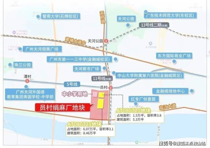 项目分南北地块开发,北地块离地铁 5 号线 / 11 号线员村站约 900 米(步行 15 分钟),南地块更靠近江边,不过目前周边被城中村和旧厂房环绕,员村旧改进度缓慢,城市界面有点杂乱,跟 “高大上” 的金融城规划相比,现阶段看着还挺 “接地气”。